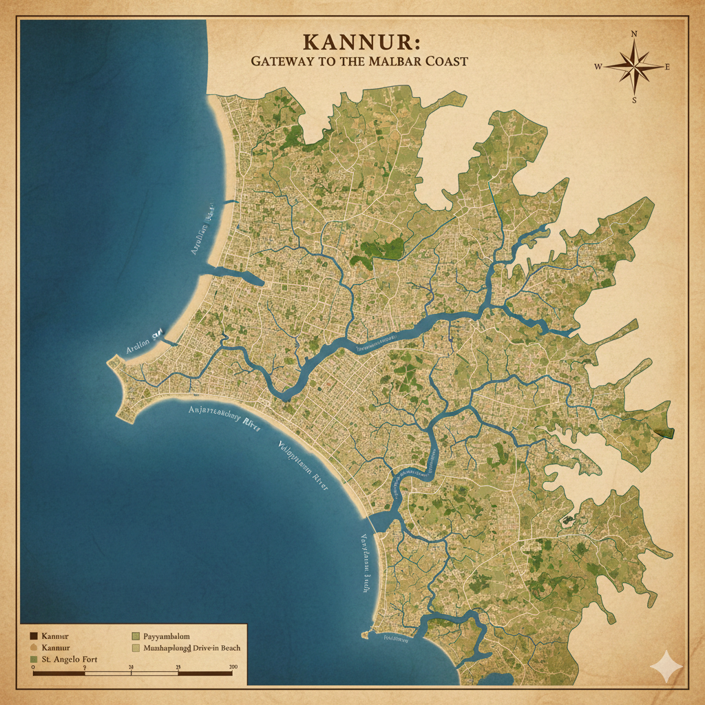 Kannur, often called the Crown of Kerala, is a vibrant coastal city known for its rich history, cultural heritage, and natural beauty. Located in the northern part of Kerala along the Arabian Sea, Kannur has played a significant role in shaping the region’s trade, politics, and traditions over centuries.