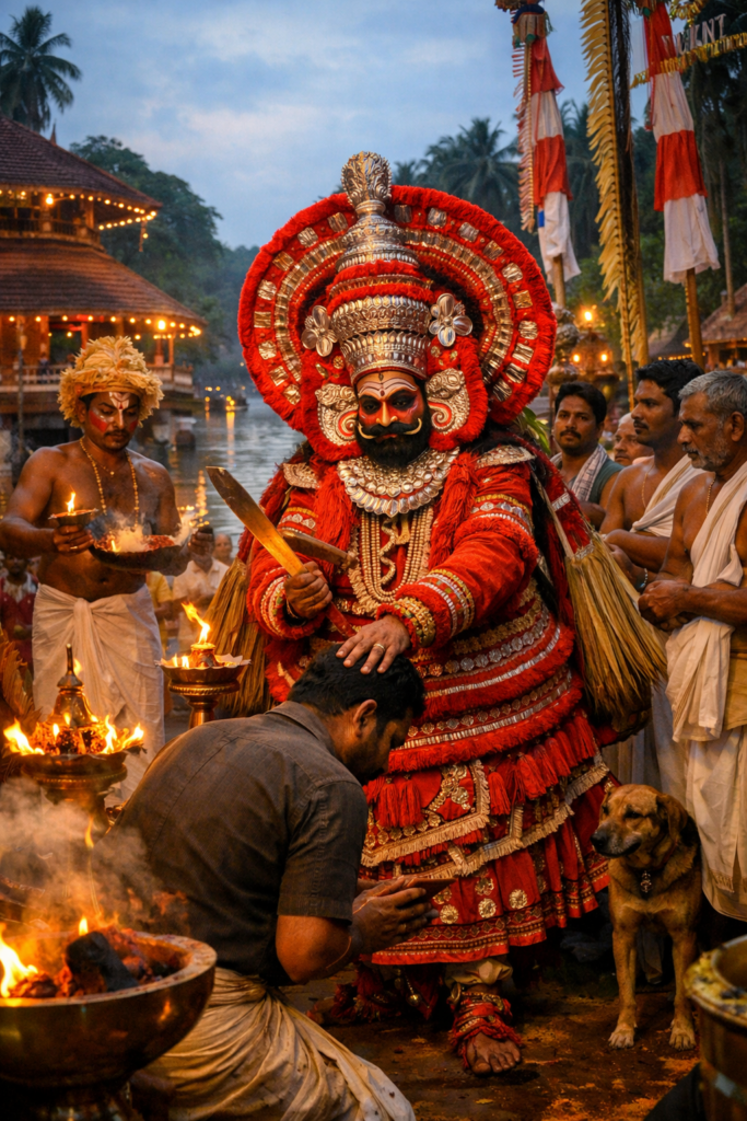 Parassinikkadavu Muthappan Theyyam is one of the most renowned and spiritually significant temple festivals of Kannur, Kerala. It is celebrated annually at the famous Parassinikkadavu Muthappan Temple, located on the banks of the Valapattanam River. The temple holds a unique place in Kerala’s cultural landscape, as Muthappan is worshipped as a folk deity beyond caste and religious boundaries.